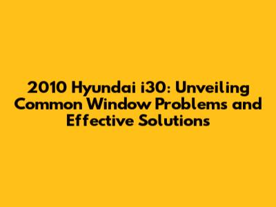 Understanding Common Window Issues in Your 2010 Hyundai i30