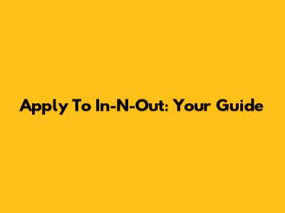 Apply To In-N-Out: Your Guide