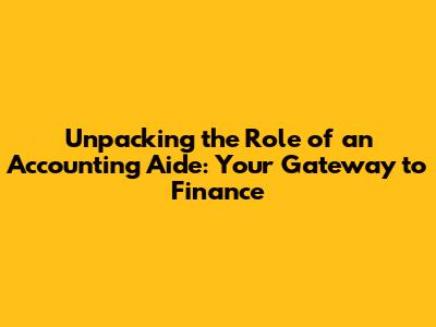 Unpacking the Role of an Accounting Aide: Your Gateway to Finance