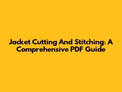 Jacket Cutting And Stitching: A Comprehensive PDF Guide