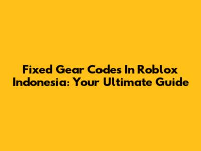 Fixed Gear Codes In Roblox Indonesia: Your Ultimate Guide