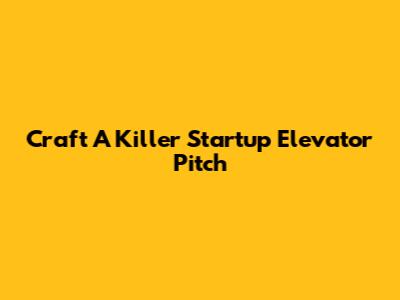 Craft A Killer Startup Elevator Pitch