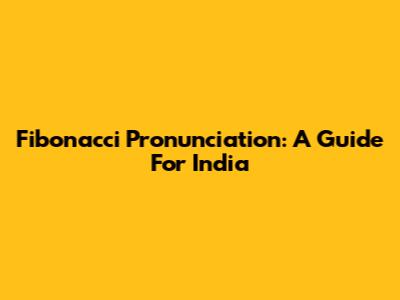 Fibonacci Pronunciation: A Guide For India