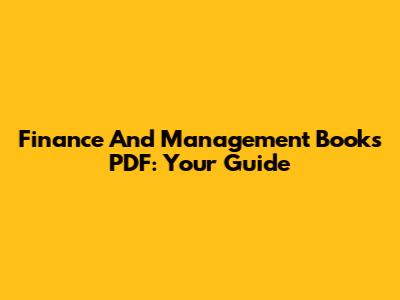 Finance And Management Books PDF: Your Guide