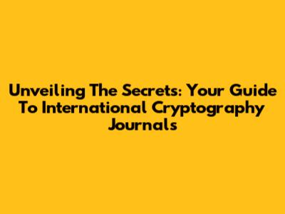 Unveiling The Secrets: Your Guide To International Cryptography Journals