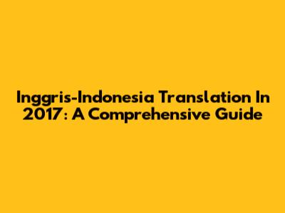 Inggris-Indonesia Translation In 2017: A Comprehensive Guide