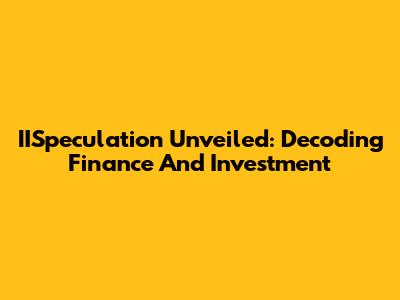 IISpeculation Unveiled: Decoding Finance And Investment