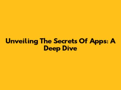 Unveiling The Secrets Of Apps: A Deep Dive
