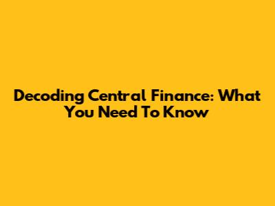 Decoding Central Finance: What You Need To Know