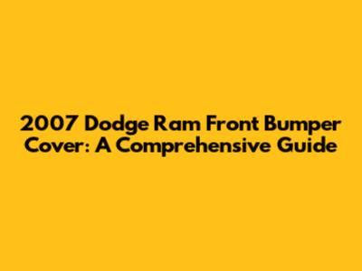 2007 Dodge Ram Front Bumper Cover: A Comprehensive Guide