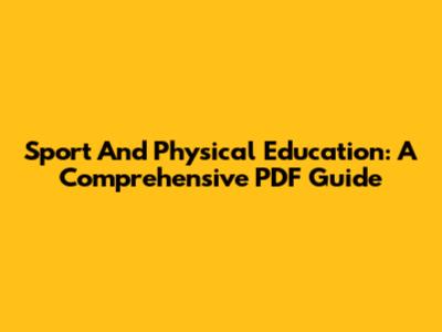 Sport And Physical Education: A Comprehensive PDF Guide