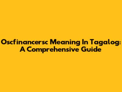 Oscfinancersc Meaning In Tagalog: A Comprehensive Guide