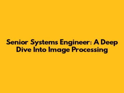 Senior Systems Engineer: A Deep Dive Into Image Processing