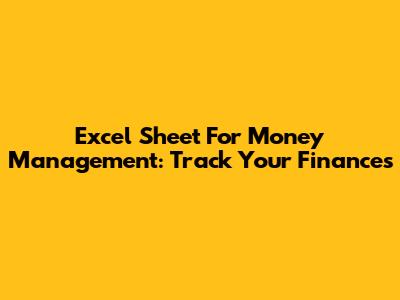 Excel Sheet For Money Management: Track Your Finances