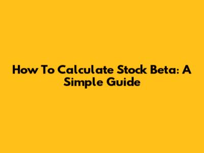 How To Calculate Stock Beta: A Simple Guide