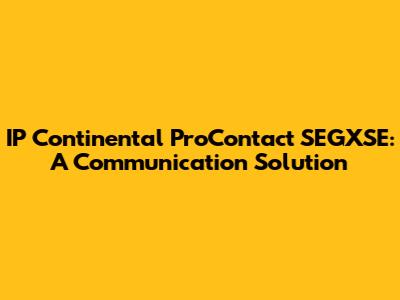 IP Continental ProContact SEGXSE: A Communication Solution