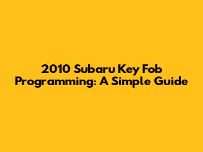 2010 Subaru Key Fob Programming: A Simple Guide