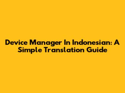 Device Manager In Indonesian: A Simple Translation Guide