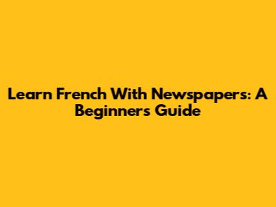Learn French With Newspapers: A Beginner's Guide