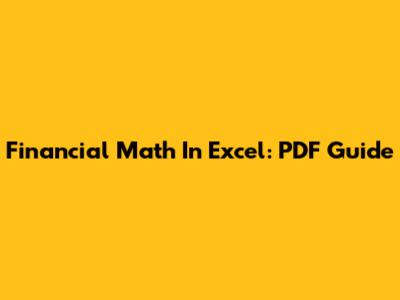Financial Math In Excel: PDF Guide