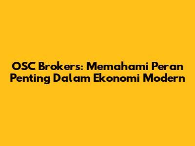 OSC Brokers: Memahami Peran Penting Dalam Ekonomi Modern