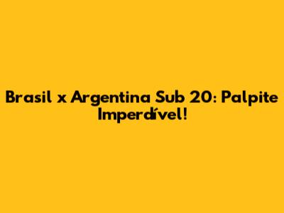 Brasil X Argentina Sub 20: Palpite Imperdível!