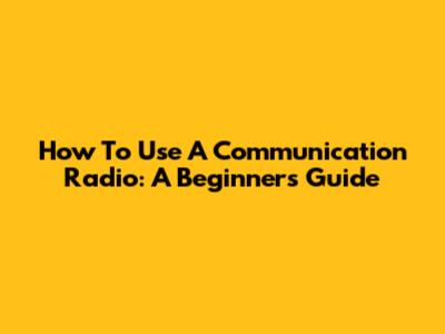 How To Use A Communication Radio: A Beginner's Guide