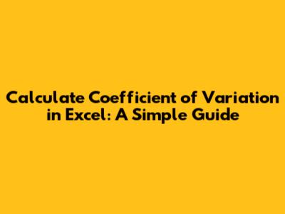 Alright, let's get practical! Here's how you can calculate the coefficient of variation in Excel, step by simple step: