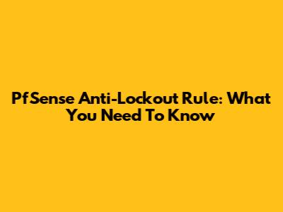PfSense Anti-Lockout Rule: What You Need To Know