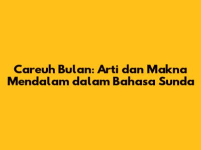 Hey guys! Have you ever stumbled upon the term "careuh bulan" and wondered what it means, especially if you're diving into the rich tapestry of the Sundanese language? Well, you're in the right place! Let's unravel this intriguing phrase, explore its meaning, and understand its cultural significance. Trust me, it's more than just a couple of words; it's a peek into the Sundanese worldview.
