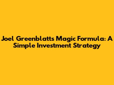 Joel Greenblatt's Magic Formula: A Simple Investment Strategy