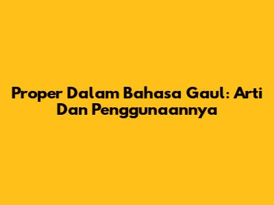 Proper Dalam Bahasa Gaul: Arti Dan Penggunaannya