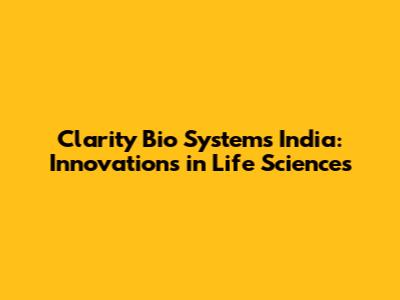Clarity Bio Systems India: Innovations In Life Sciences