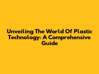 Unveiling The World Of Plastic Technology: A Comprehensive Guide