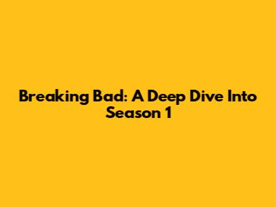 Breaking Bad: A Deep Dive Into Season 1