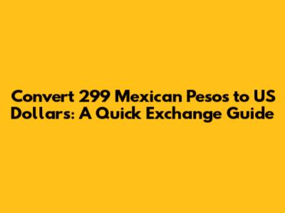 Therefore, 299 Mexican pesos is approximately equal to $14.95 US dollars, based on an exchange rate of 20 MXN per 1 USD. Keep in mind that this is just an example. The actual exchange rate fluctuates constantly, so the exact amount in USD may vary slightly depending on when and where you make the conversion. To get the most accurate conversion, always check a reliable currency converter just before you exchange your money. Also, remember that banks and exchange services may charge fees or commissions, which can affect the final amount you receive. Being aware of these factors will help you manage your money more effectively and avoid any surprises when converting currencies.
