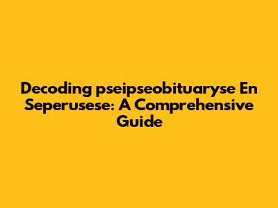 Decoding 'pseipseobituaryse En Seperusese': A Comprehensive Guide