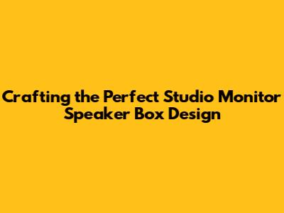 Understanding the Basics of Studio Monitor Speaker Box Design