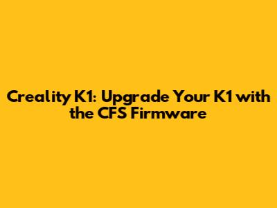 What Exactly is the CFS Upgrade Firmware for the Creality K1?