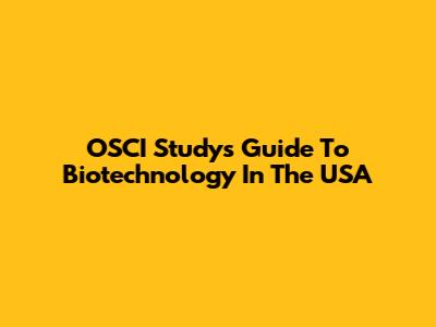 OSCI Study's Guide To Biotechnology In The USA