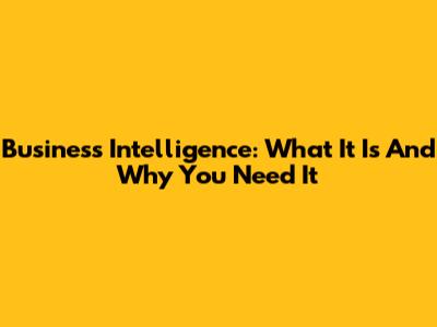 Business Intelligence: What It Is And Why You Need It