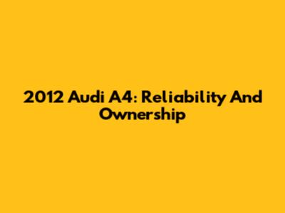 2012 Audi A4: Reliability And Ownership