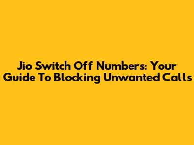 Jio Switch Off Numbers: Your Guide To Blocking Unwanted Calls