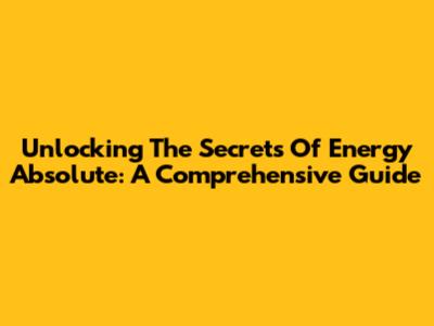 Unlocking The Secrets Of Energy Absolute: A Comprehensive Guide