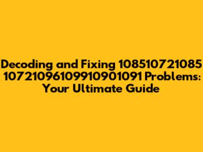 Troubleshooting Steps: How to Fix 108510721085 10721096109910901091