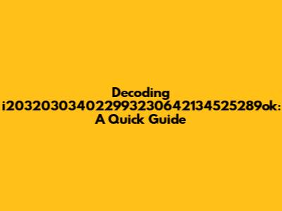 Alright, guys, let's dive straight into decoding this jumble of characters: i203203034022993230642134525289ok. It looks like something a cat walked across, right? But don't worry, we'll break it down, or at least try to make some sense of it. It's like trying to understand what your grandma is saying when she's talking about the "internet thingy." You just nod and smile, but here, we're gonna try to actually understand.