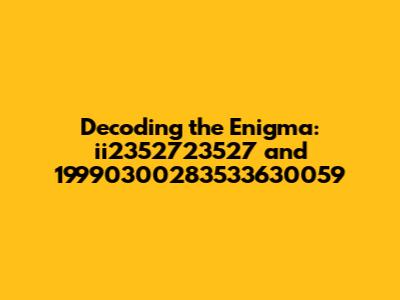 Ever stumbled upon a string of characters that just made you scratch your head? Well, ii2352723527 19990300283533630059 might just be one of those! Let's break down this cryptic sequence and see if we can make some sense of it. Guys, buckle up; we're diving deep into the world of seemingly random data. Our main keywords here are, of course, the enigmatic strings themselves: ii2352723527 and 19990300283533630059. Understanding these could unlock insights into data handling, identification systems, or even internal tracking mechanisms used by various organizations. Imagine the possibilities! To really get to grips with this, we need to consider its potential context. Is it a product ID? A serial number? A segment of encoded data? Without more information, we're in detective mode, piecing together clues. Let's explore potential avenues and decipher this mystery together. This could involve looking at the structure of each component, examining the frequency of certain characters or numbers, and comparing it to known data patterns. Think of it like cracking a code – each digit, each letter, might hold a vital piece of the puzzle. The more we analyze, the closer we get to unraveling its true meaning. And who knows? Maybe this exercise will give us a glimpse into the future of data management and how complex information is handled behind the scenes.