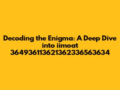 Alright guys, let's dive headfirst into the mysterious world of iimoat 364936113621362336563634. What exactly is this seemingly random string of characters and numbers? Well, that's the million-dollar question, isn't it? In this article, we're going to break down what iimoat 364936113621362336563634 could potentially represent, explore its possible origins, and discuss why something like this might even exist in the first place. Whether it's a cryptic code, a serial number, or just a complete fluke, we'll leave no stone unturned. So buckle up and get ready for a journey into the unknown! First off, let's consider the structure. We have the term "iimoat" followed by a very long string of numbers. This combination immediately suggests a few possibilities. It could be an identifier of some sort, perhaps for a product, a piece of software, or even a specific record in a database. The "iimoat" part might be a brand name, a project code, or simply a unique label chosen by someone. The string of numbers could be a serial number, a timestamp, or some other form of unique identifier. Analyzing the numerical portion, it’s quite long – 28 digits to be exact. Such a long string is unlikely to be randomly generated, as the chances of collision (i.e., the same number being generated twice) are significantly reduced with longer sequences. Therefore, it is highly probable that this number holds some specific meaning or encodes certain information. For example, it could be a combination of different identifiers, such as a batch number, a production date, and a specific item number.
