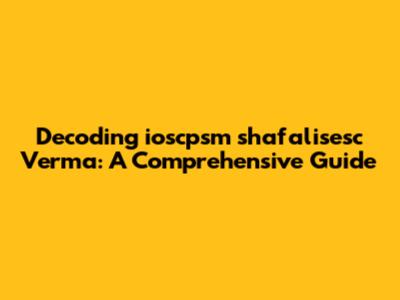 Hey guys! Ever stumbled upon the term ioscpsm shafalisesc Verma and felt like you've entered a whole new dimension of jargon? You're not alone! This guide is here to break it down in simple, easy-to-understand terms. So, buckle up, and let's dive in!