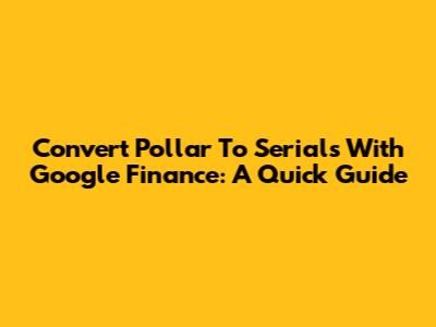 Convert Pollar To Serials With Google Finance: A Quick Guide
